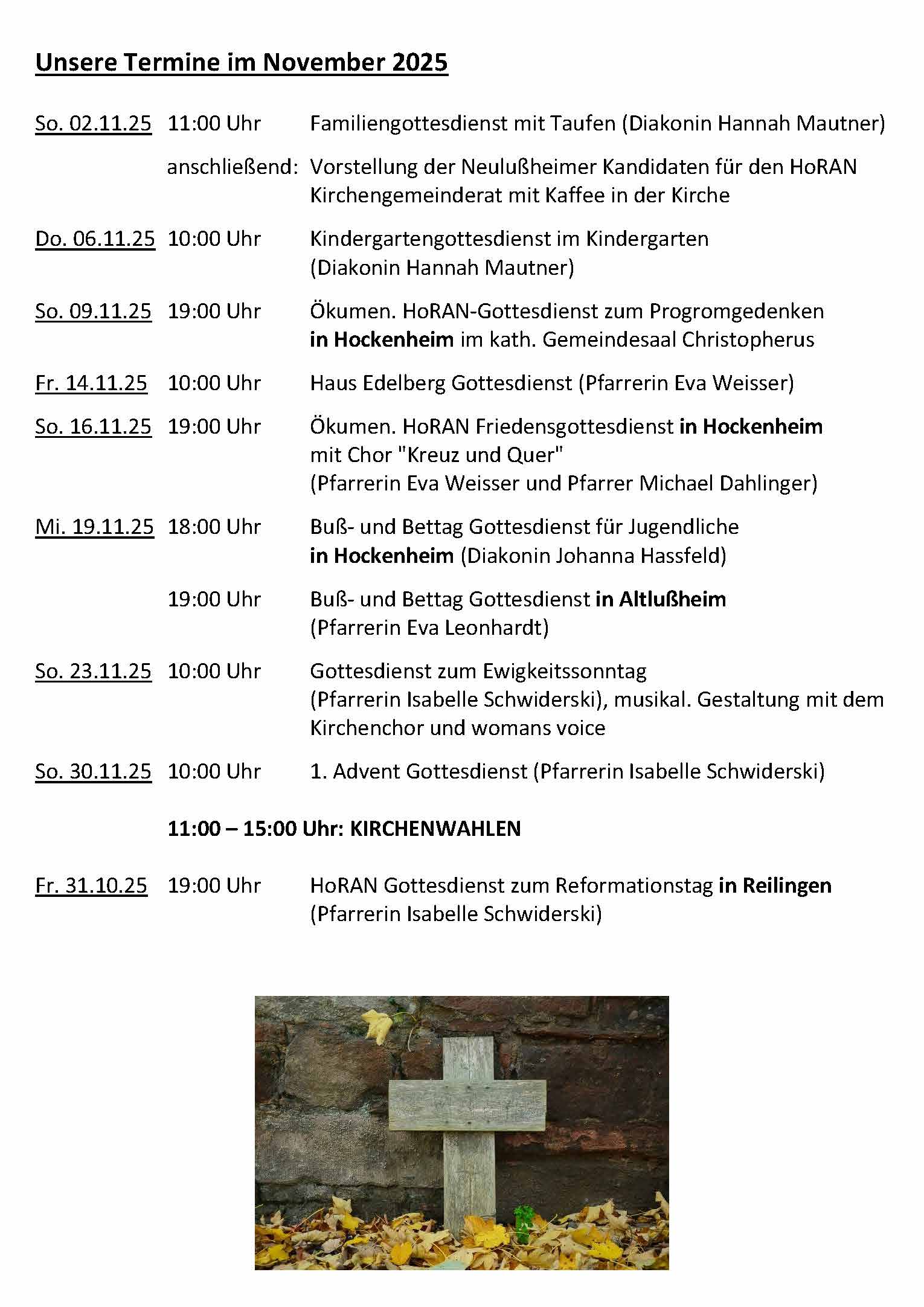 Alle Gemeindeglieder sind zur Teilnahme herzlich eingeladen.