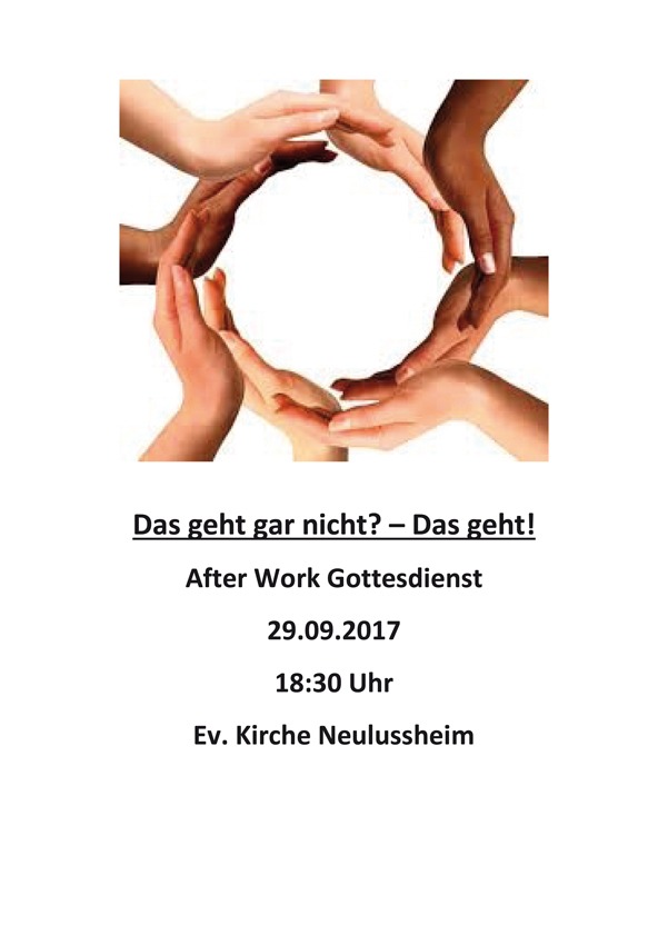 Einatmen, ausatmen – einen Moment Stille erleben. Das ist selten in der Rush Hour unseres Lebens. Runterkommen, loslassen, einfach da sein, darum geht es im After Work Gottesdienst am 22.11.2019 um 18:30 Uhr in der Ev. Kirche in Neulußheim.