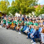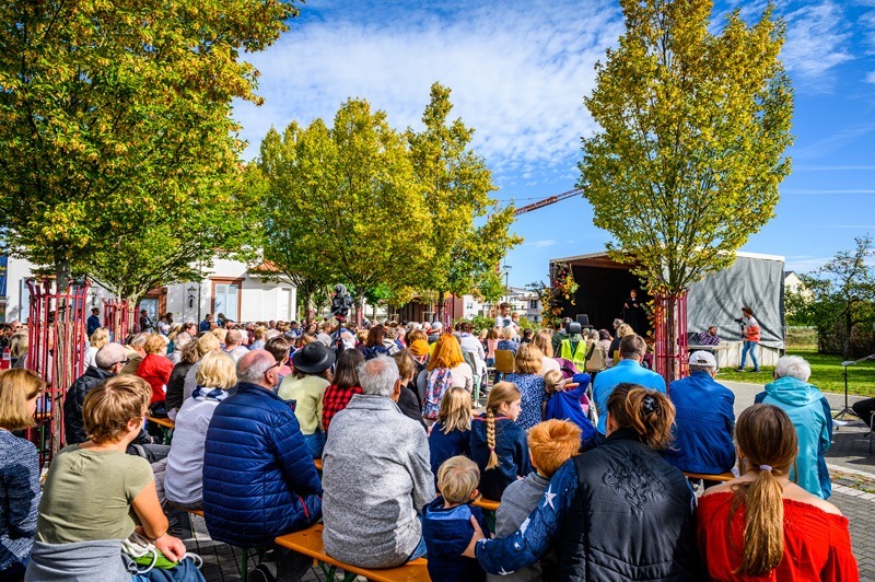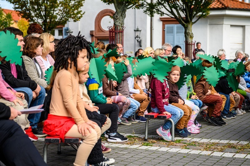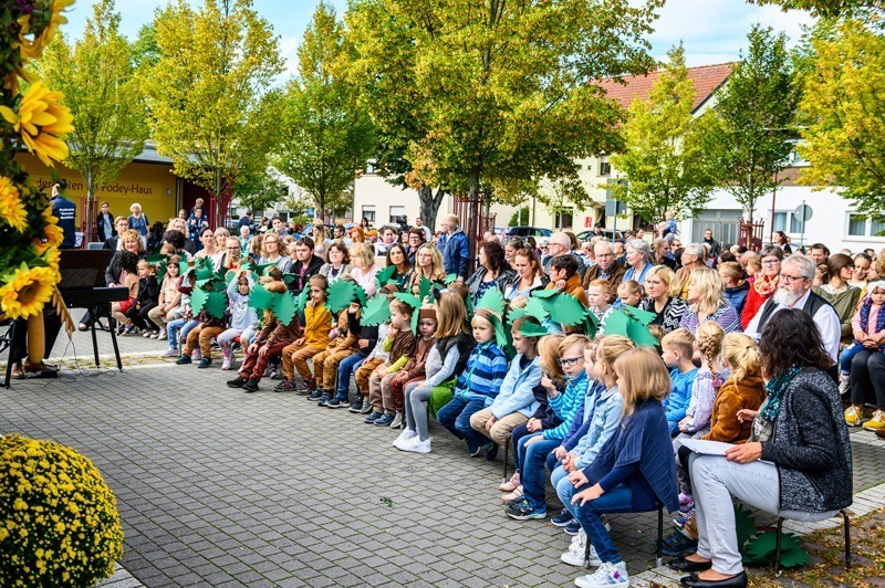 Mit dem Einzug der Podeykindergartenkinder unter der Leitung von Christian Lörch und den Erzieherinnen begann das große Gemeindefest am Alten Bahnhof.