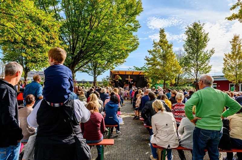 Mit der biblischen Aufforderung aus dem Petrusbrief “All eure Sorgen werft auf ihn !“, begrüßte Kirchengemeinderat Christoph Diez die über 500 erschienen Gottesdienstbesucher zum großen gemeinsamen Gemeindefest. Pfarrerin Katharina Garben freute sich auf ein wunderbares Gemeindefest und dankte allen für ihre Gebete für das gutes Wetter. Allen Ehrenamtlichen dankte sie im Vorfeld, die uns die Sorge um dieses Fest mit der Organisation und Durchführung abgenommen haben.