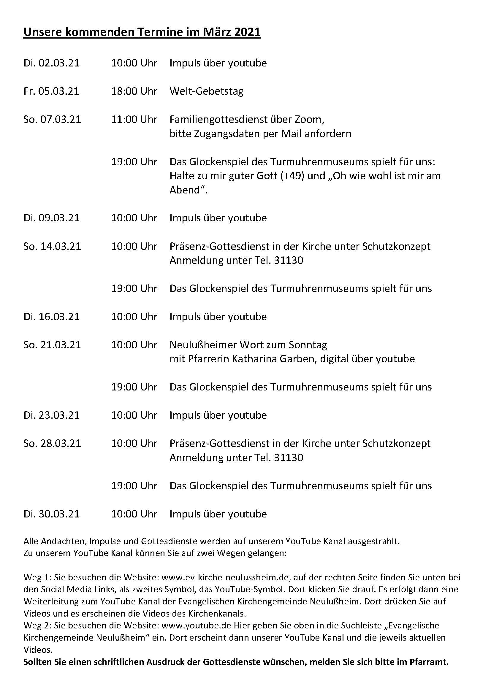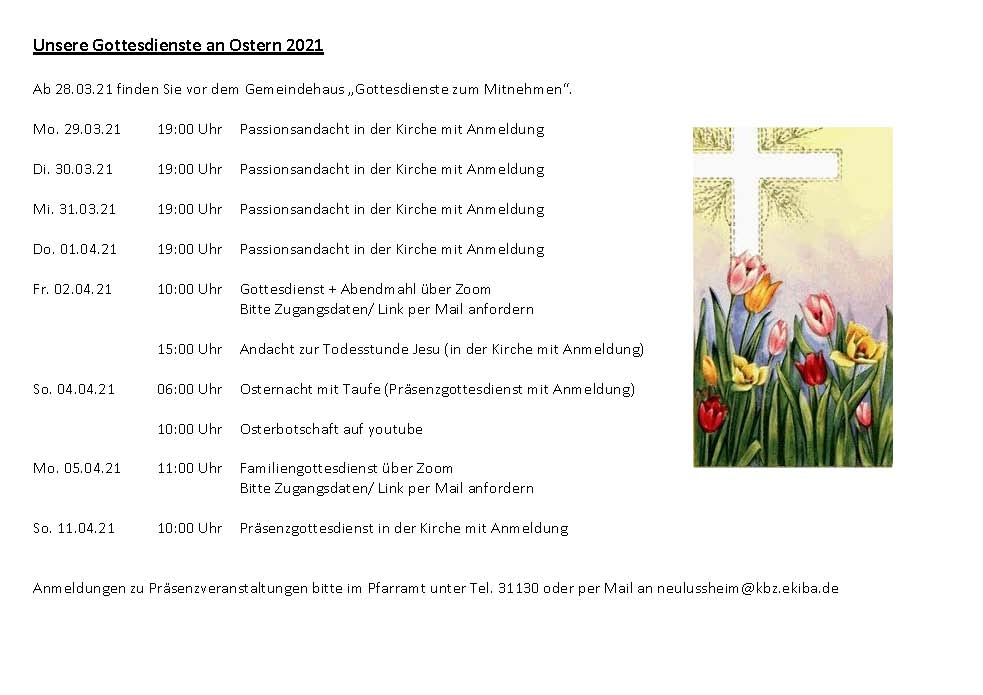 Anmeldungen nimmt die Kirchengemeinde unter 06205-31130 oder neulussheim@kbz.ekiba.de entgegen.