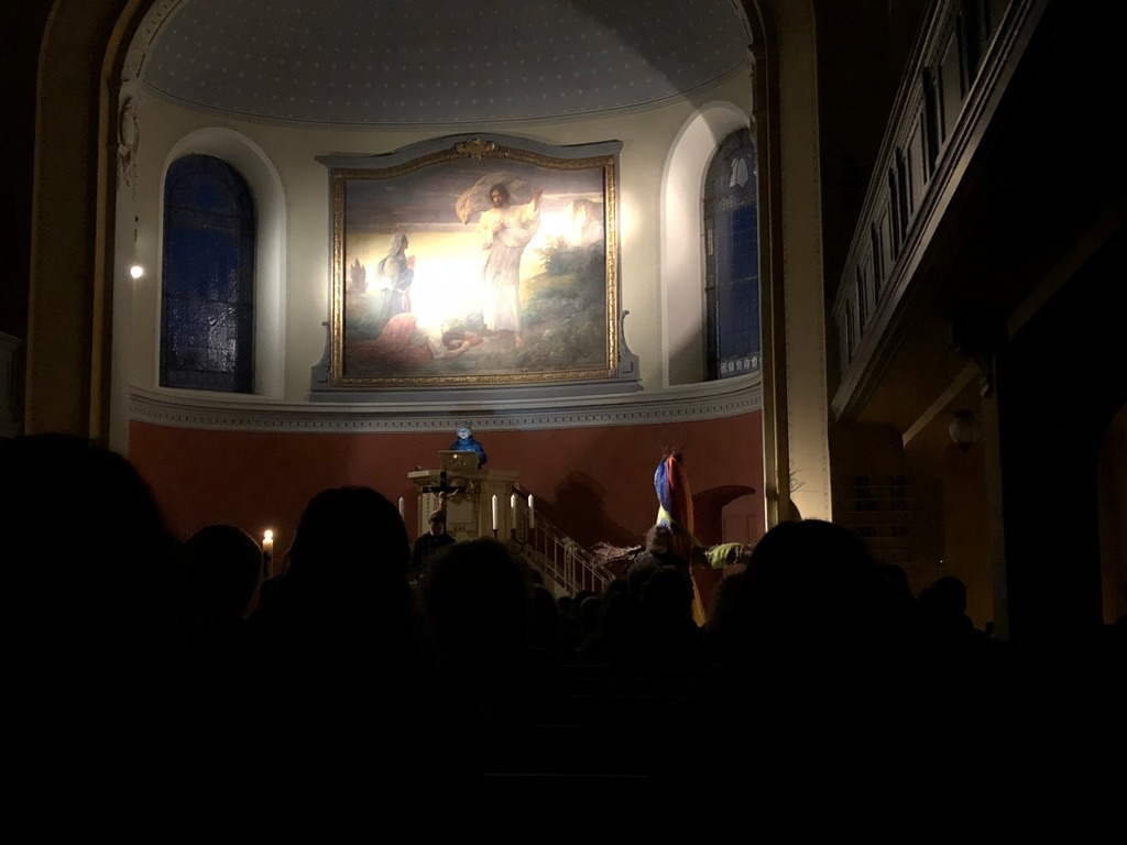 Die Konfirmanden des diesjährigen Jahrgangs bereiten die Osternacht vor. Es wird ein Kind und ein Jugendlicher getauft und das Abendmahl gefeiert.