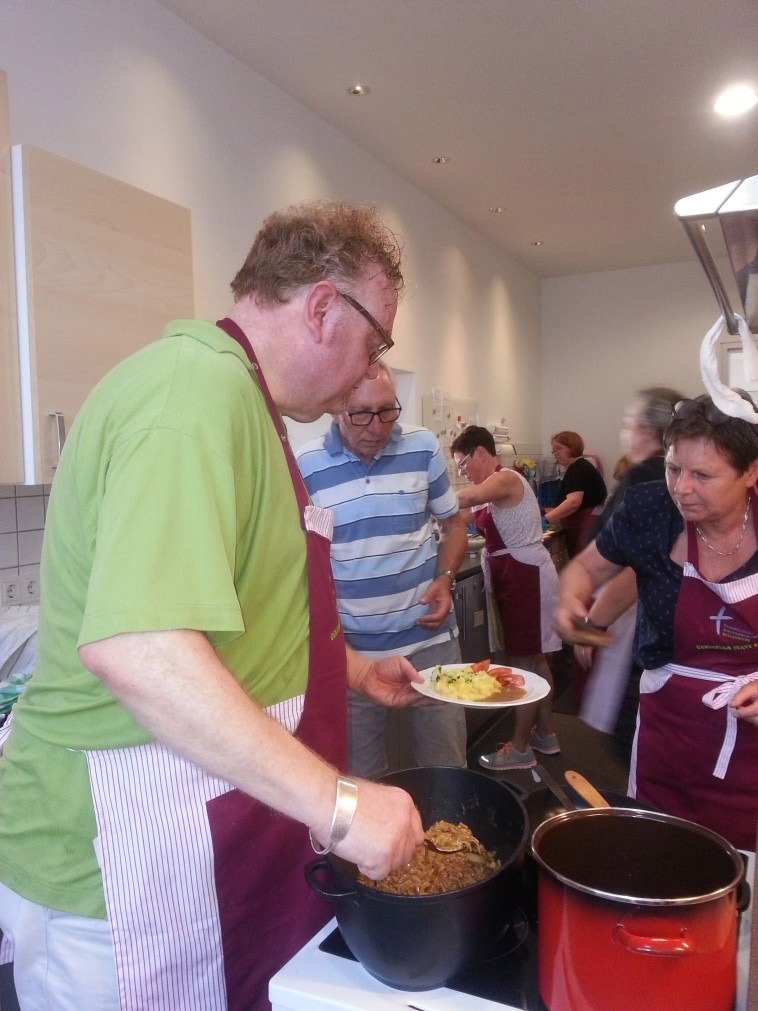 Zum Gelingen des hochsommerlichen Abends trug das engagierte „Gemeinsam statt Einsam-Helfer-team“ in Küche und Service bei.