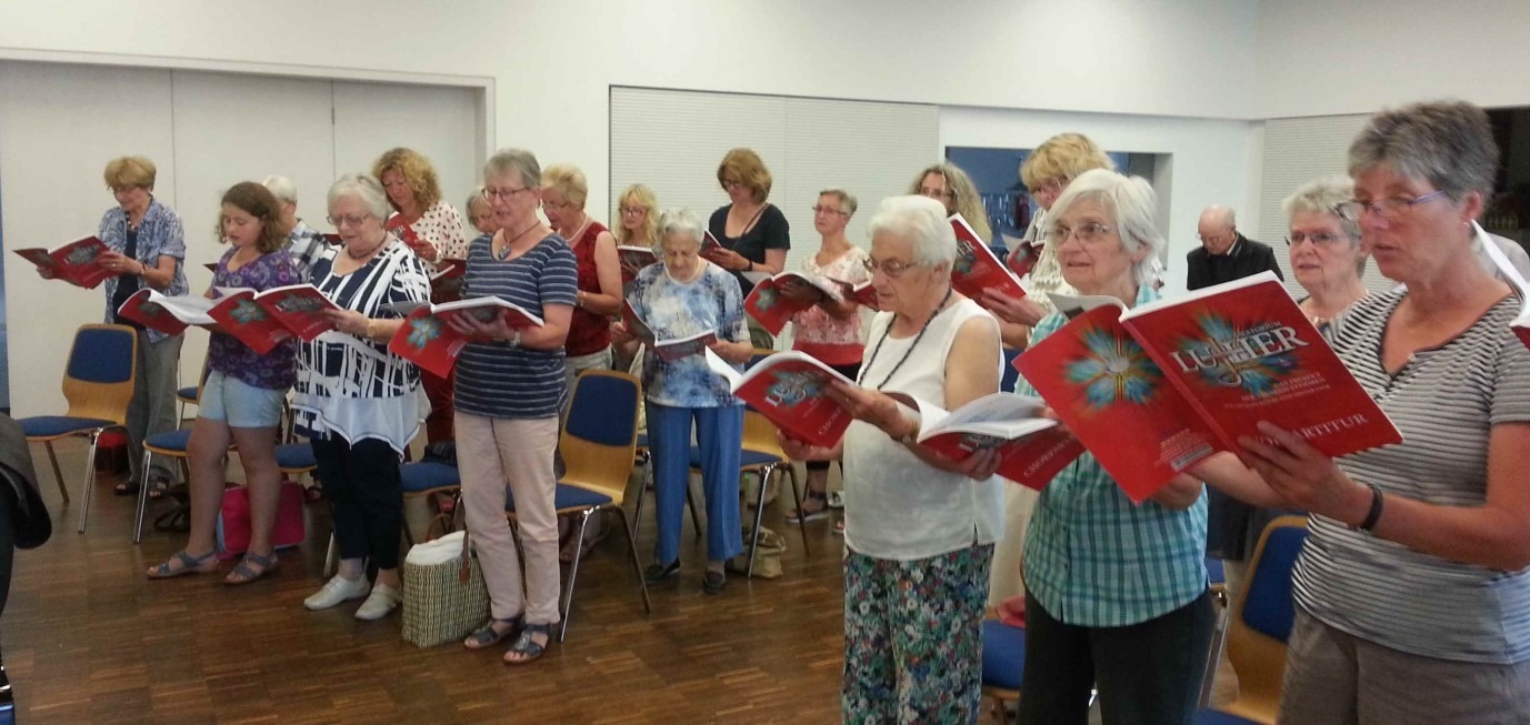 Walburga Schäfer ist bisher voll zufrieden mit ihrem Luther-Projektchor. An den 20 Stücken wird intensiv gefeilt. Zu lange oder zu kurze Einsätze sogleich erkannt und korrigiert. Die Chorpartitur füllt sich mit Hinweisen und Ausrufezeichen, damit man das Gelernte nicht vergisst. Konzentriert gibt jede Stimme ihr Bestes. Die Probenstunde am Mittwoch Abend geht deshalb immer im Nu vorbei.