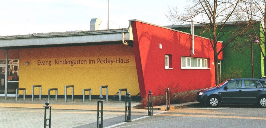 Der Evang. Kindergarten im Podey-Haus (4 Kindergartengruppen 2 Kleinkindgruppen) ist eine Bildungseinrichtung für Kinder von 1-6 Jahren mit einer ganztägigen Öffnungszeit.