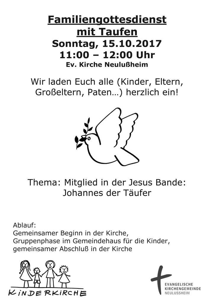 Wir laden Euch alle (Kinder, Eltern, Großeltern, Paten…) herzlich ein!