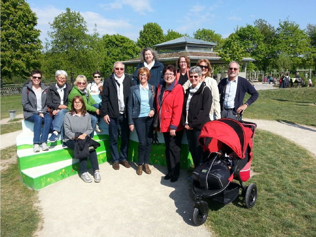 Da die anschließend geplante Schlossführung in Heidelberg durch Dr. Ralf Wagner wegen Krankheit auf den 09.Juni verschoben werden musste, machte sich das Team auf, um sich ein Bild vom Alla-Hopp-Spielplatz in Schwetzingen zu machen. Nicht nur die vielen Kinder hatten ihren Spaß. Pfarrerin Garben versuchte sich im Balance halten und Bruno Schmidt trainierte seine Bauchmuskeln. Ein tolles Gelände, das auch Erwachsenen jede Menge Abwechslung zur Fitness bietet. Schade, dass Neulußheim bei der damaligen Bewerbung keinen Zuschlag bekam, an der Grillhütte wäre jede Menge Platz gewesen, so das Team. Beim weiteren Spaziergang über das Gelände drehten sich die Gespräche bereits um die geplante Speisefolge für das kommende Jahr, wenn es am 12. Januar 2018 wieder heißt: