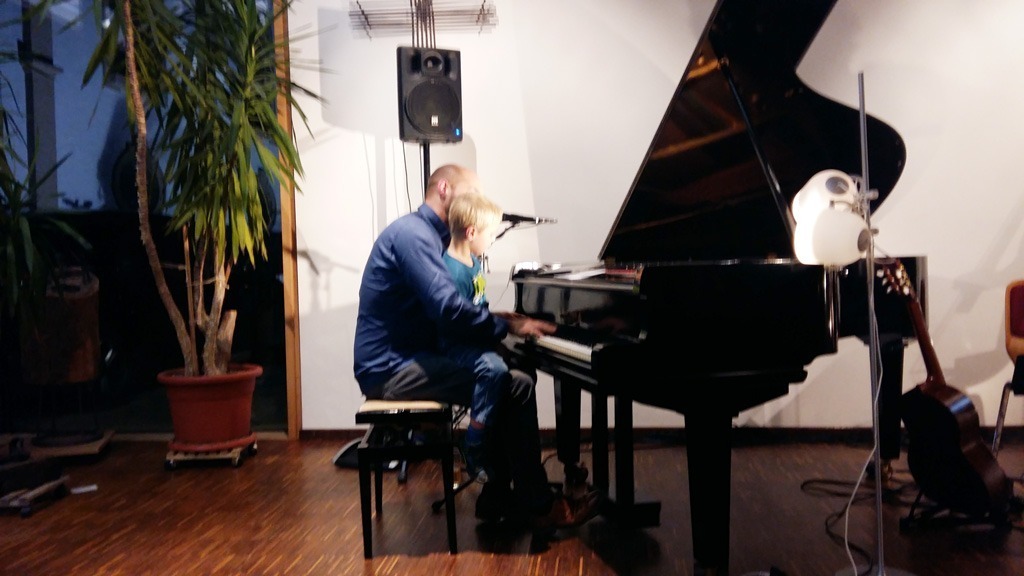 Beim Lied über den kleinen Jungen, der so gern ein Astronaut sein wollte, wurde Christoph Engelsberger von seinem 4-jährigen Sohn Paul mit Gesang unterstützt, denn der Song ist Pauls Lieblingslied. Auch Christophs Ehefrau und der 8-jährige Sohn Jona waren an dem Abend dabei. Jona hatte schon beim Aufbau der Technik mitgeholfen und wurde vom Opa dafür sehr gelobt.