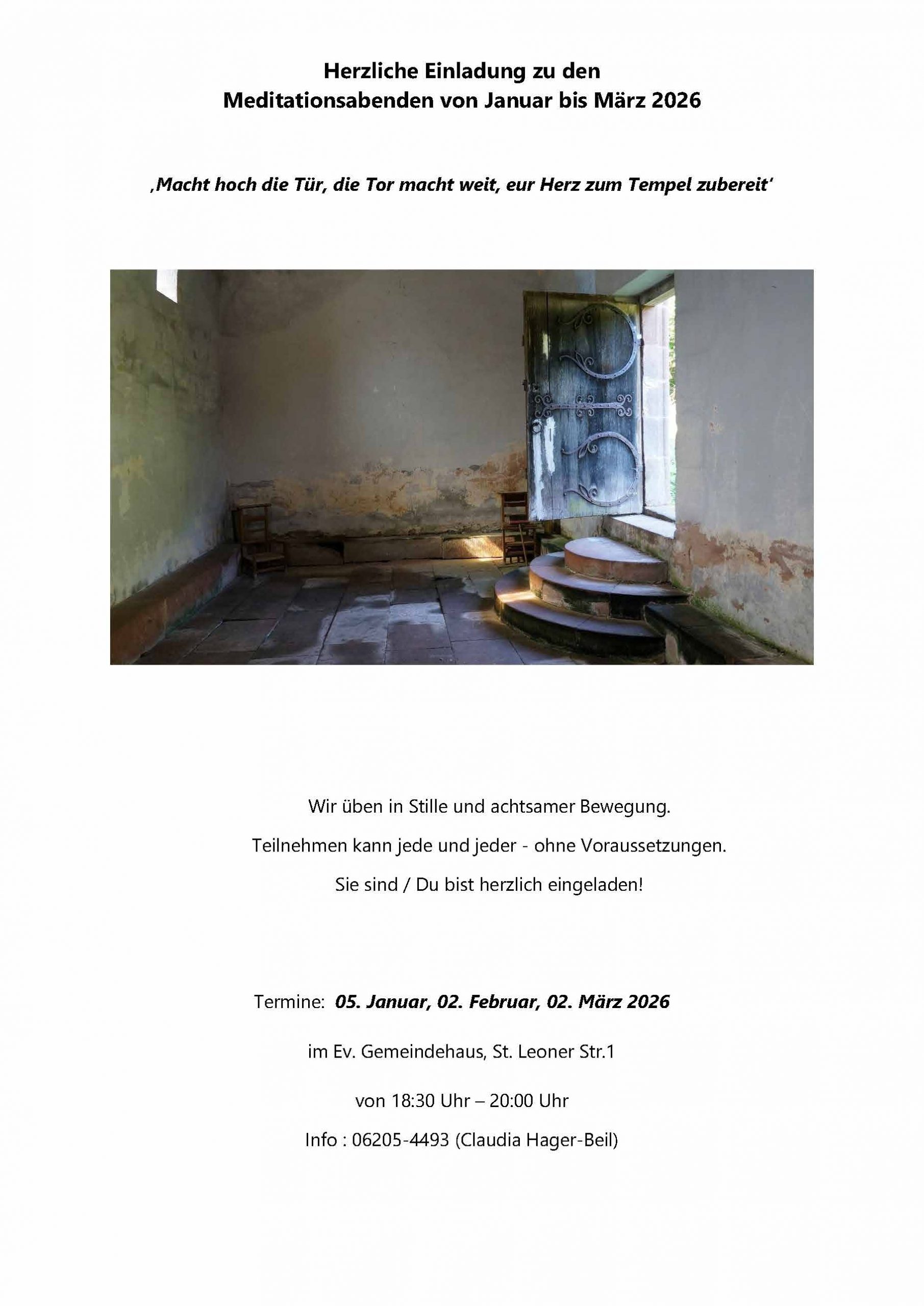 | Di. 24.02.26 | 09:15 Uhr | Morgenlob für Frauen, Ev. Gemeindehaus Neulußheim |